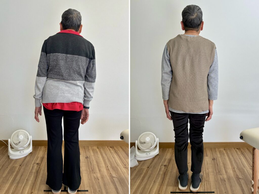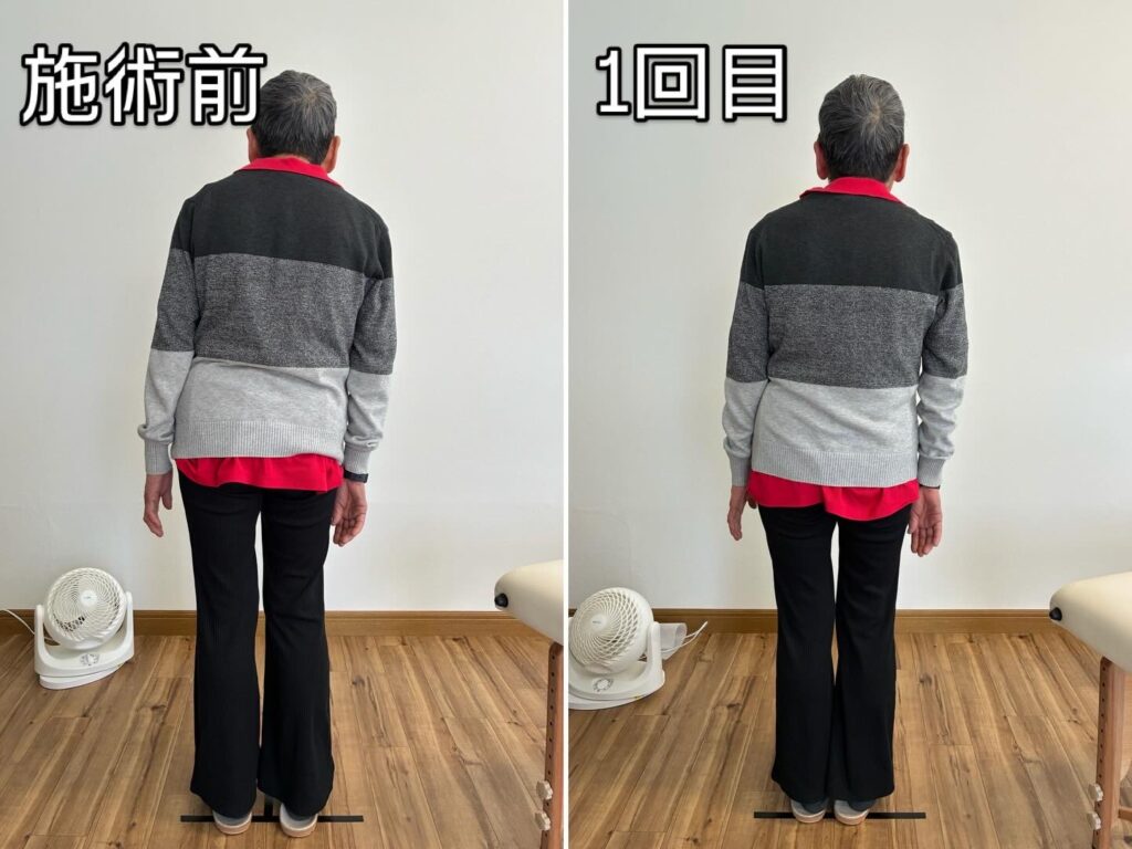 後ろ姿も、右に傾いてしまった姿勢のクセが3回のセッションでまっすぐに改善されています。