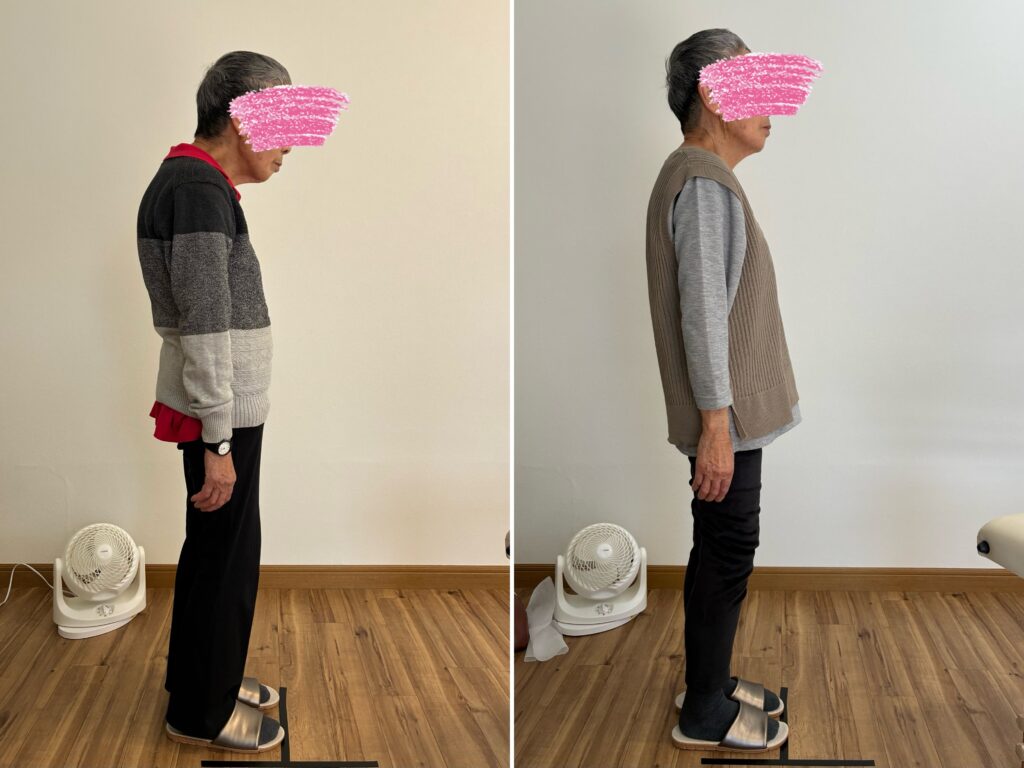 ご高齢の方でも、このように姿勢の改善は十分にできます。